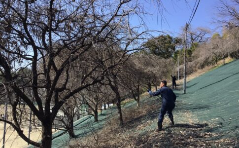 次に武蔵塚に到着。武蔵塚は晩年熊本で過ごした宮本武蔵を祀るお墓で、死後も藩主の無事を見守りたいとの武蔵の遺言により、当時参勤交代の主要道であった大津街道に面したこの地に建てられ、鎧兜に身を固めた姿でこの地に葬られているといわれております。